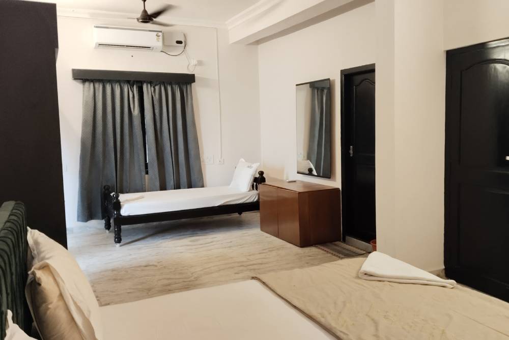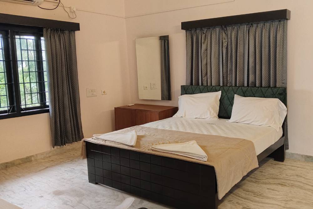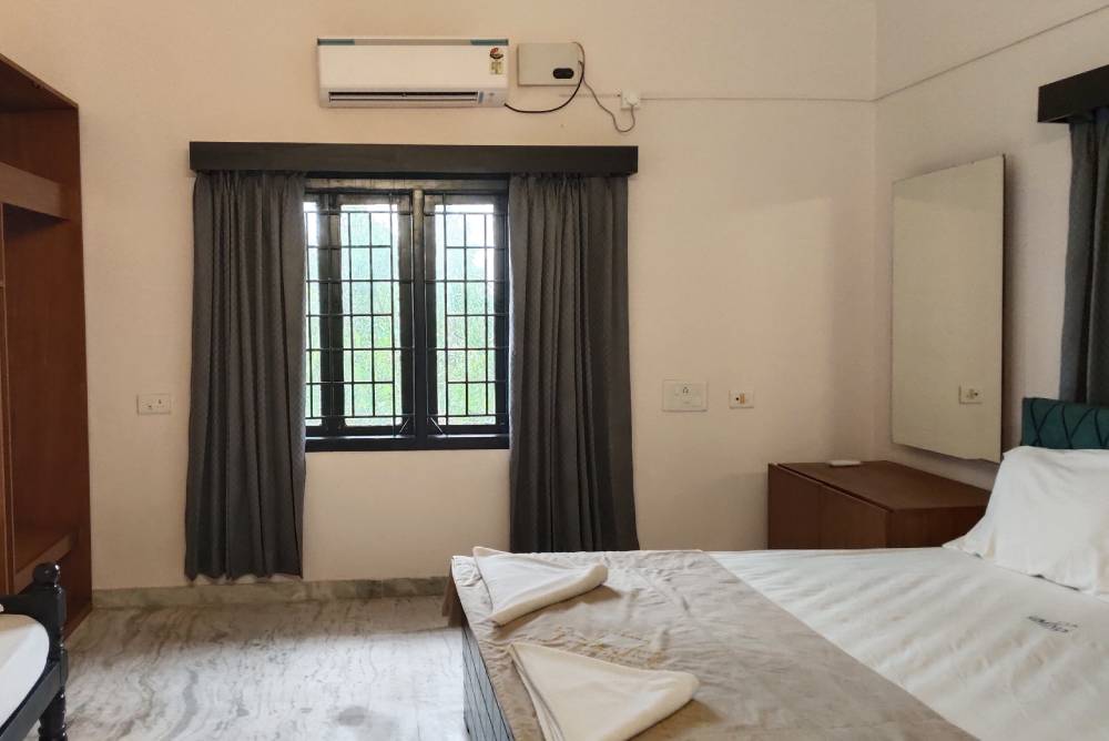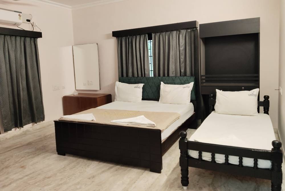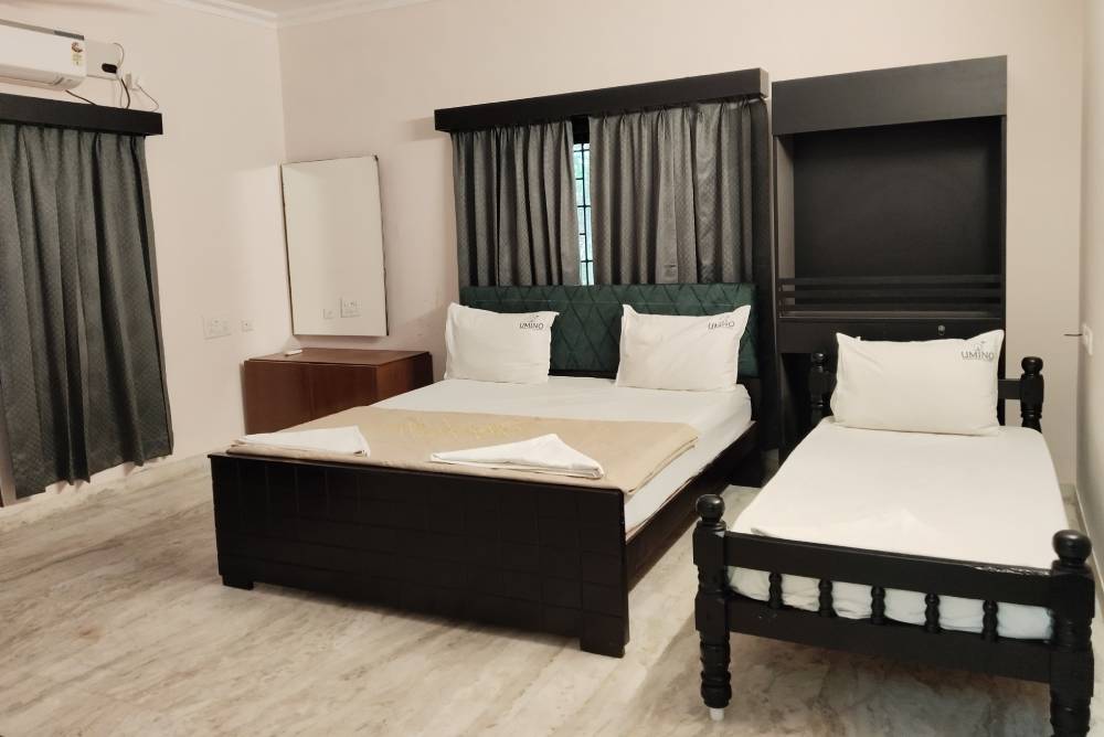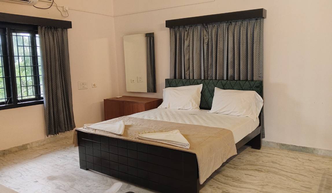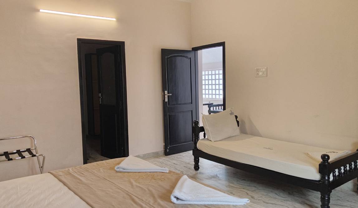 Experience spacious rooms, modern amenities, warm hospitality, and a serene beachside ambiance designed to make your Kovalam stay unforgettable. Unwind with comfortable facilities including plush beds, complimentary toiletries, free WiFi, in-room refreshments, and access to a common swimming pool.