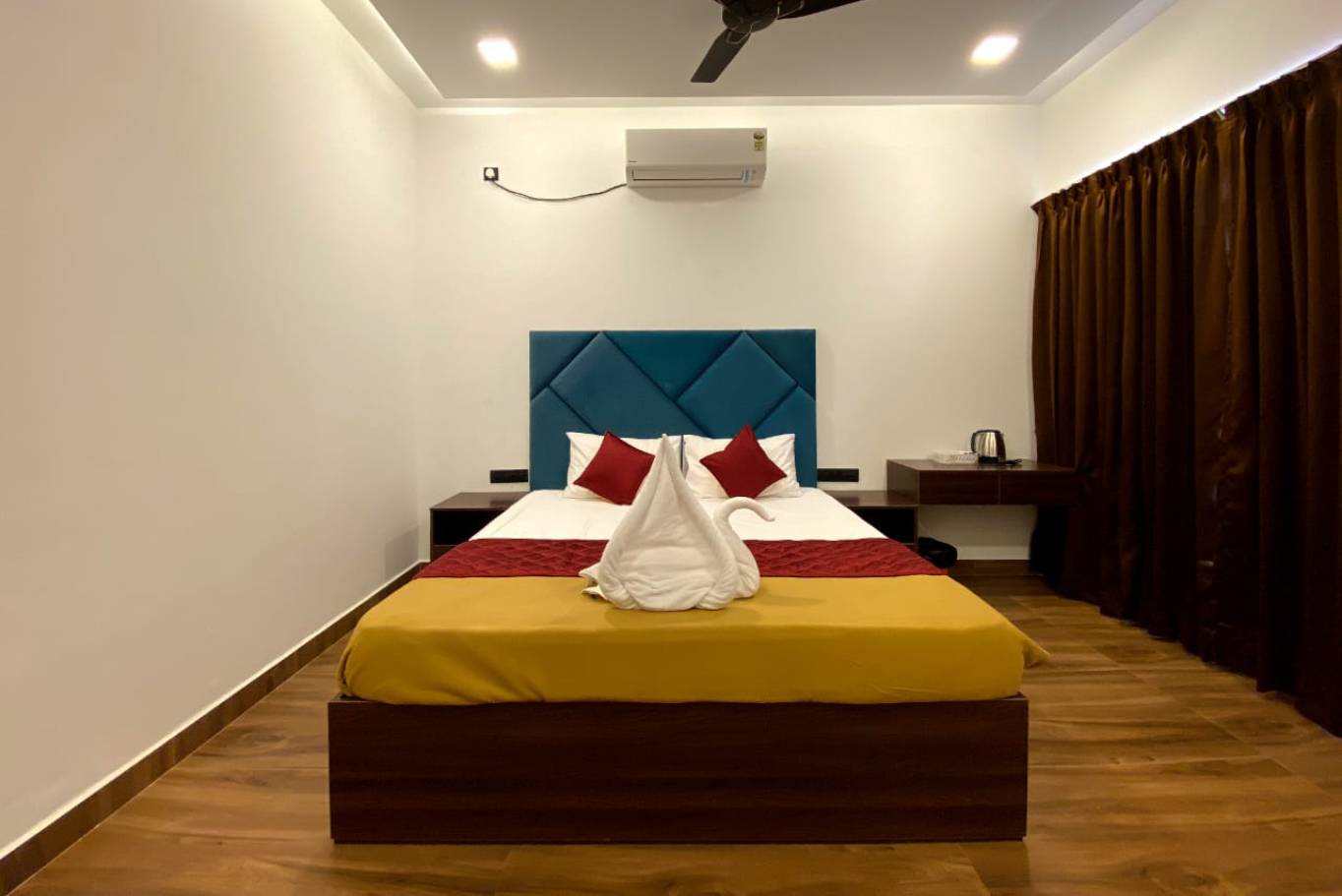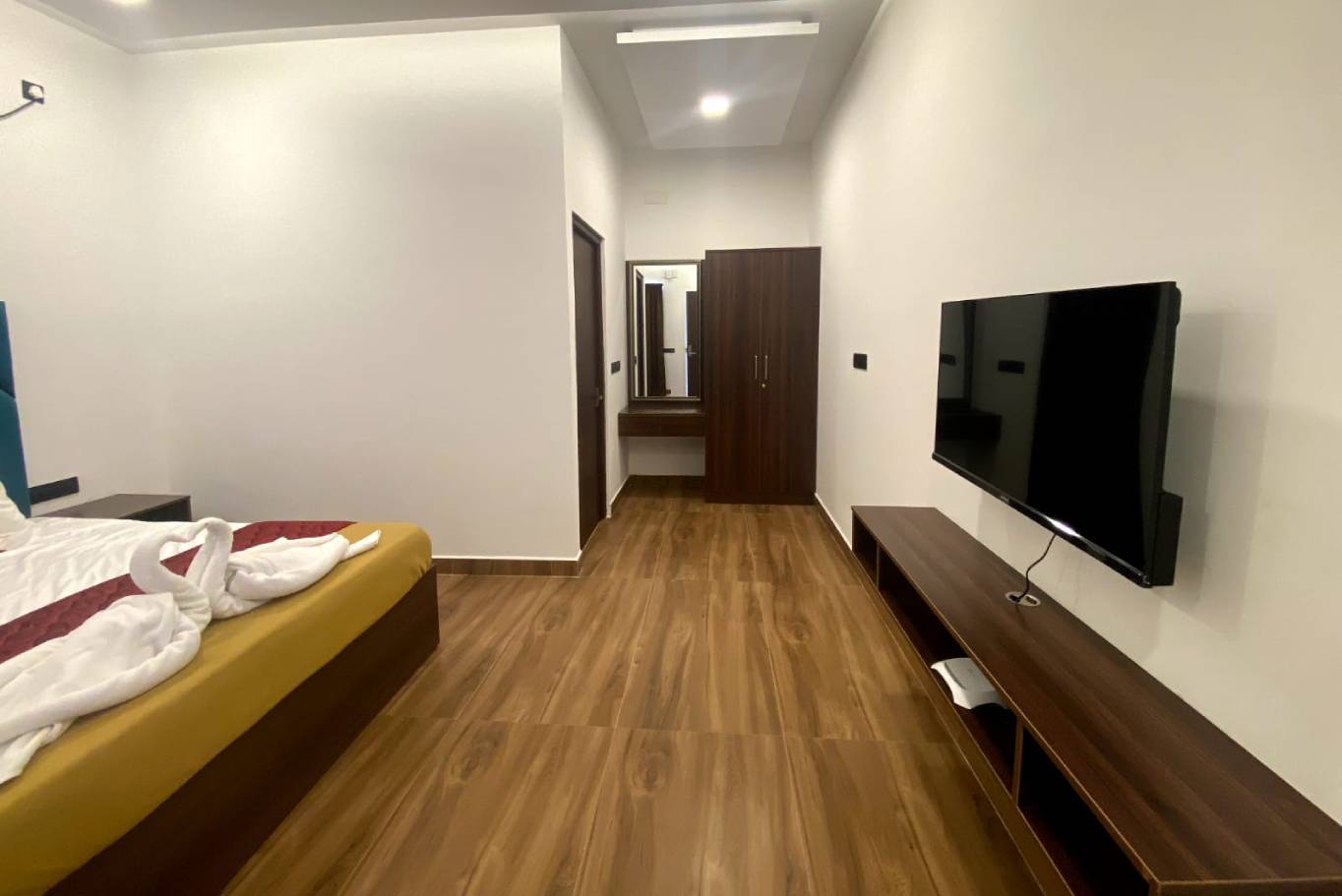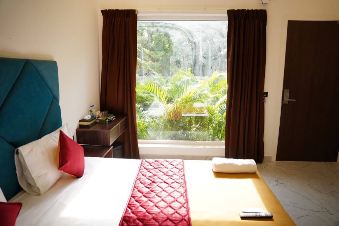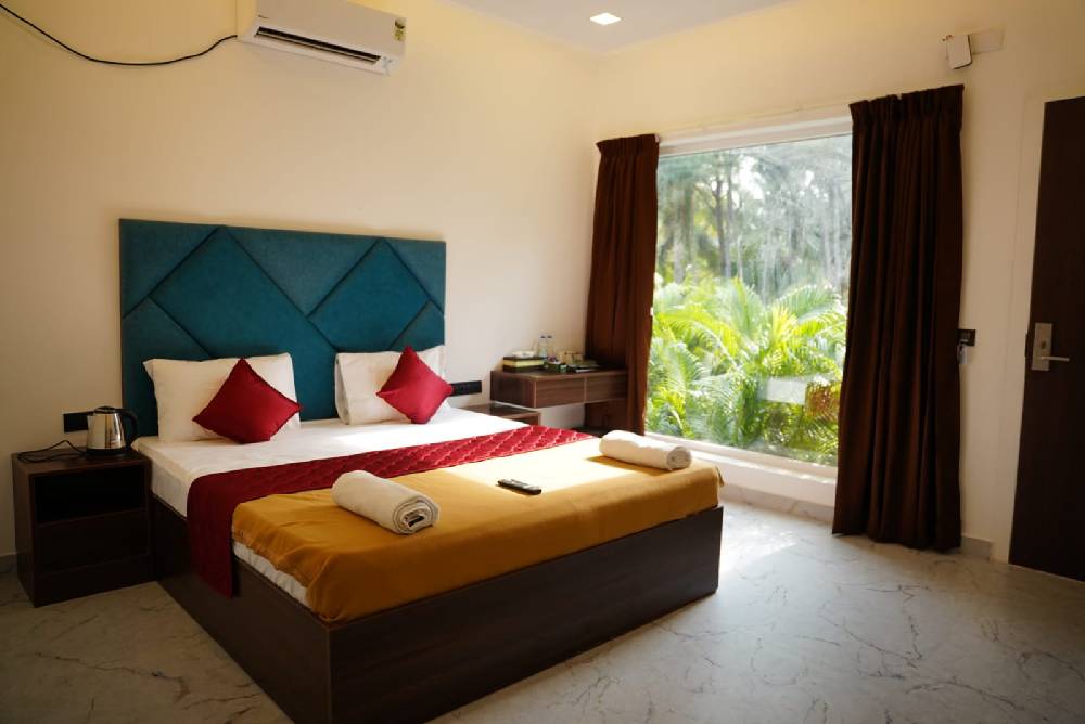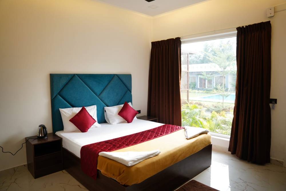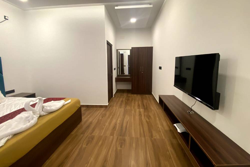 Our accommodation offers spacious, well-furnished rooms with modern amenities, ensuring comfort and relaxation. Guests enjoy air-conditioning, WiFi, room service, and 24/7 hot water, creating a peaceful stay experience surrounded by nature’s charm.